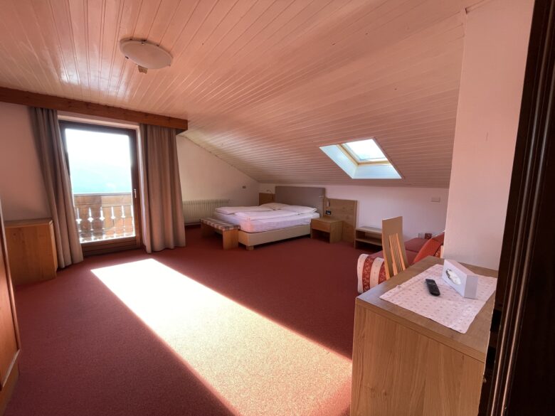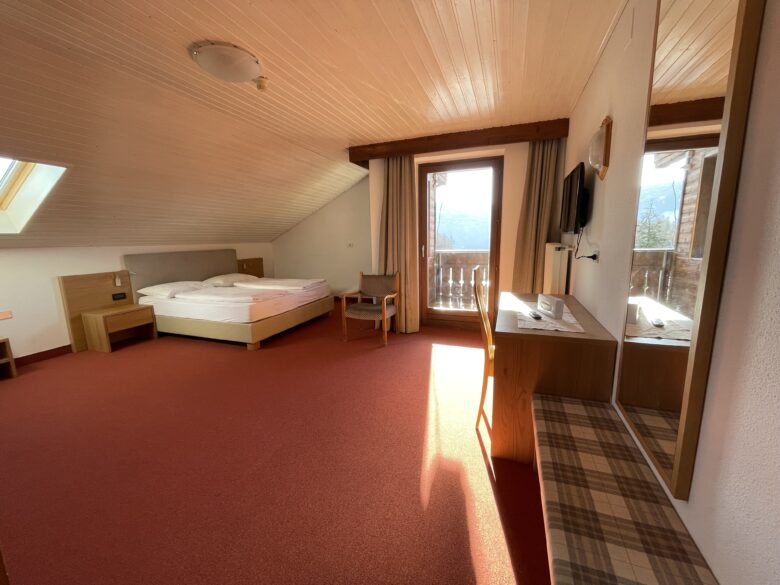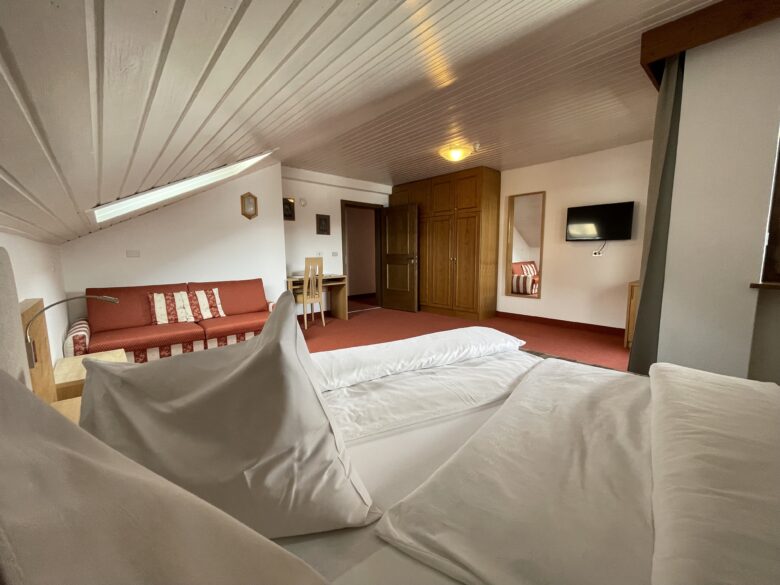 The room is tailored for couples or pairs traveling together, providing a comfortable and functional retreat after a day of exploring South Tyrol’s stunning mountains, charming villages, or scenic hiking trails. It’s equipped with all the essentials for a relaxing stay, including a spacious double bed and a private bathroom, making it a convenient base for your adventures.